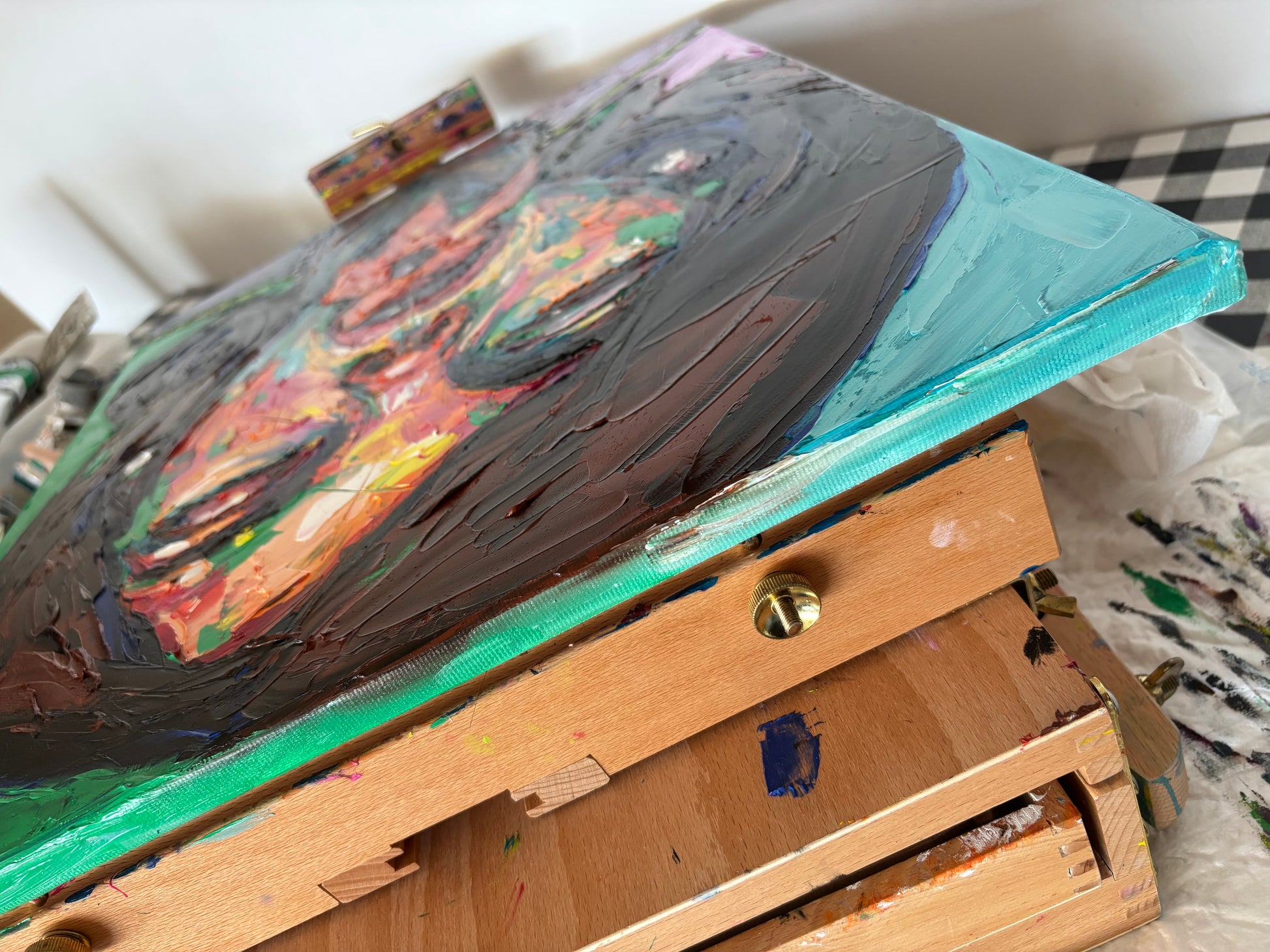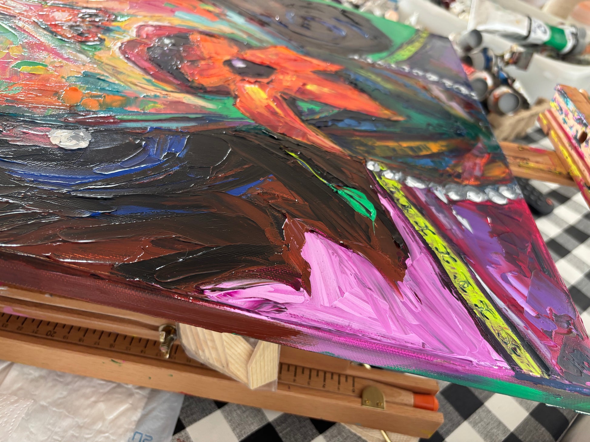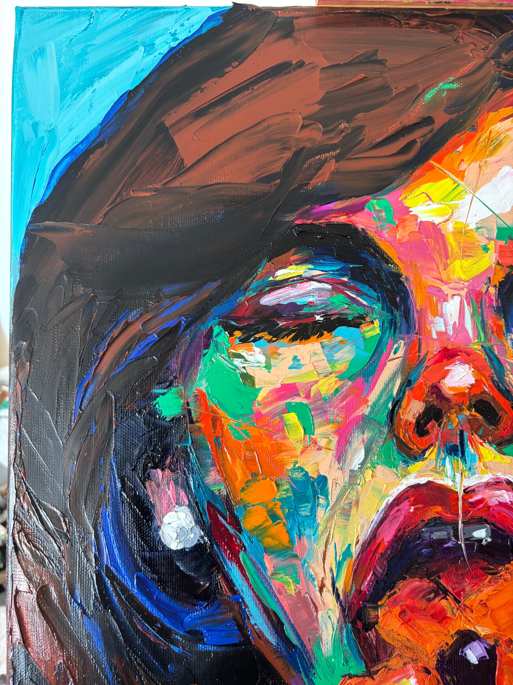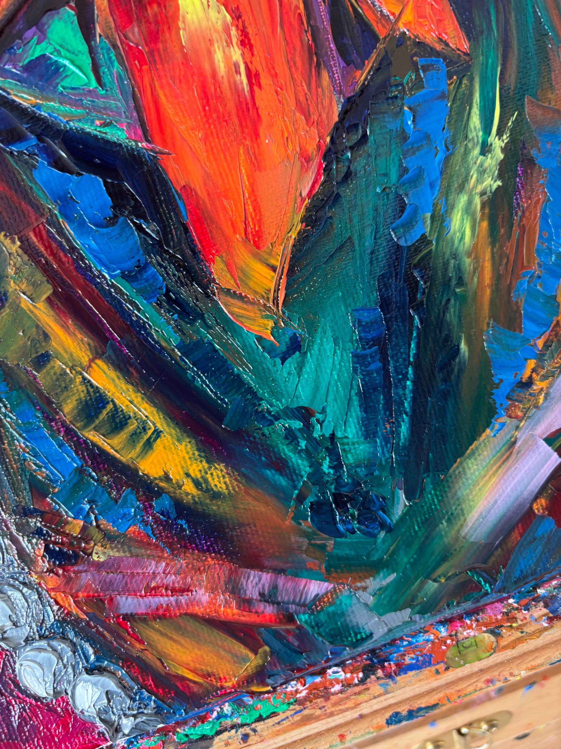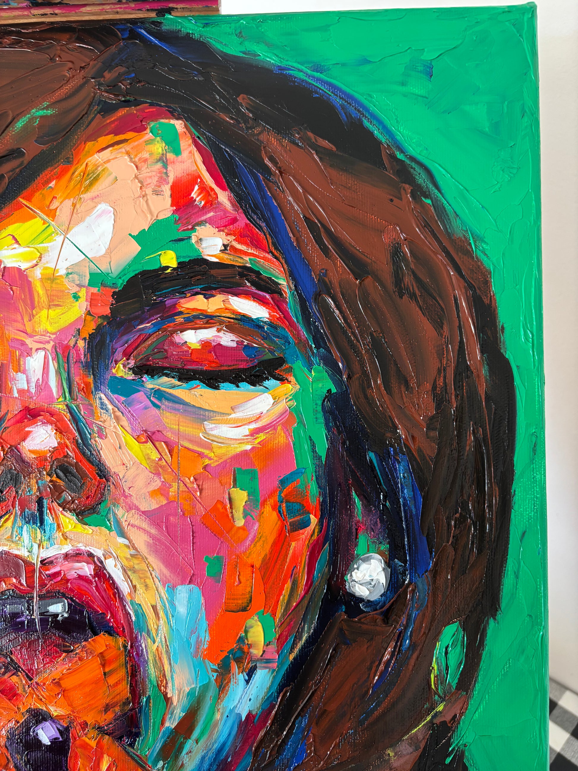 A bold and visceral portrait that merges beauty and desire in one explosive gesture. Blossombite captures the raw intensity of a woman consumed by color, as if passion itself blooms and bites back. The thick impasto textures and vibrant palette of emerald green, fiery orange, fuchsia, and deep violet bring the figure to life with magnetic energy.