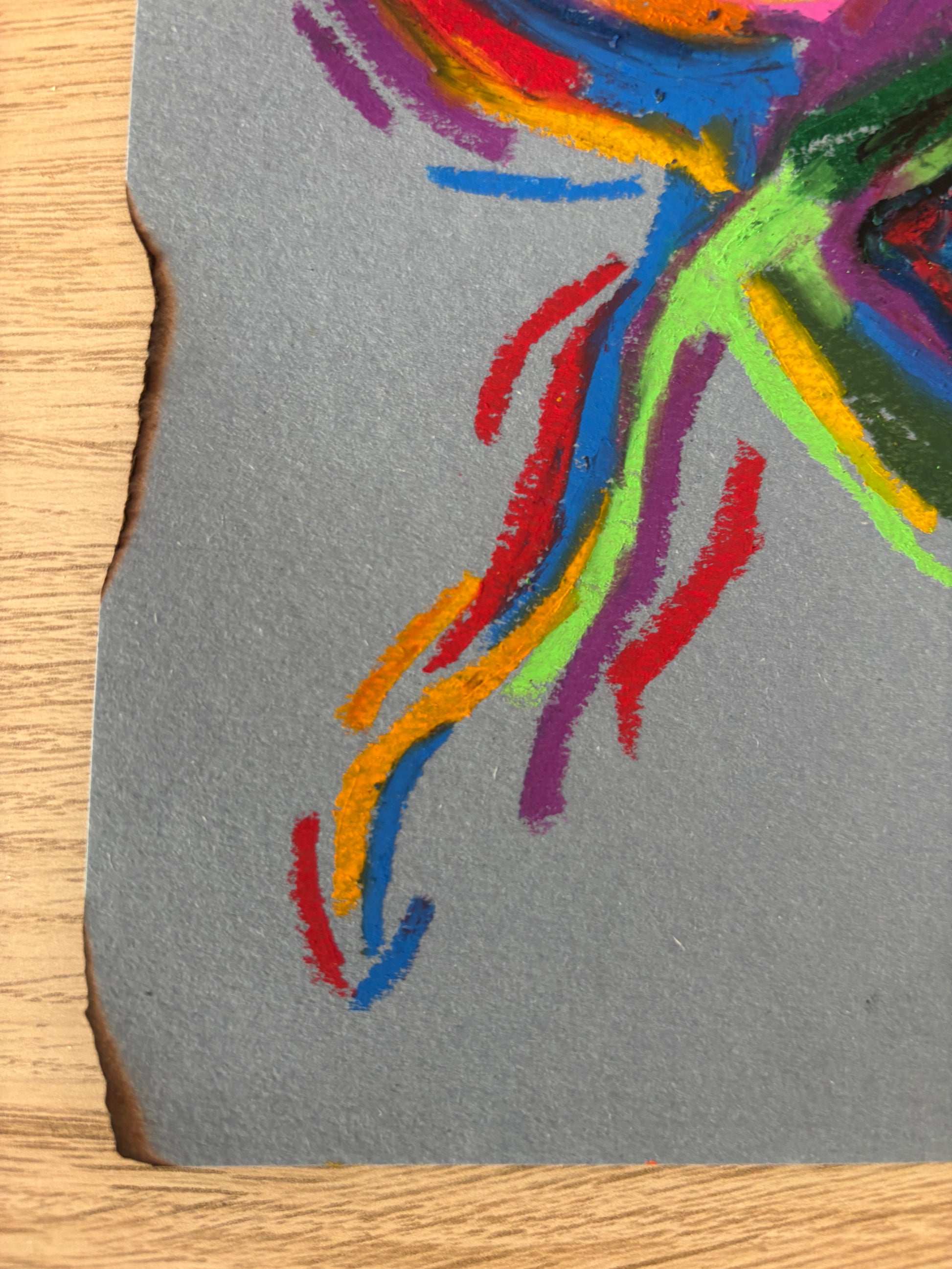 The edges of the paper have been intentionally burned, adding an element of mystery and timelessness. These scorched borders suggest the passage of time, fragility, and transformation—turning the piece into something both raw and symbolic. This detail connects the work to a small series where each creation carries the unique signature of fire, blending destruction with creation.