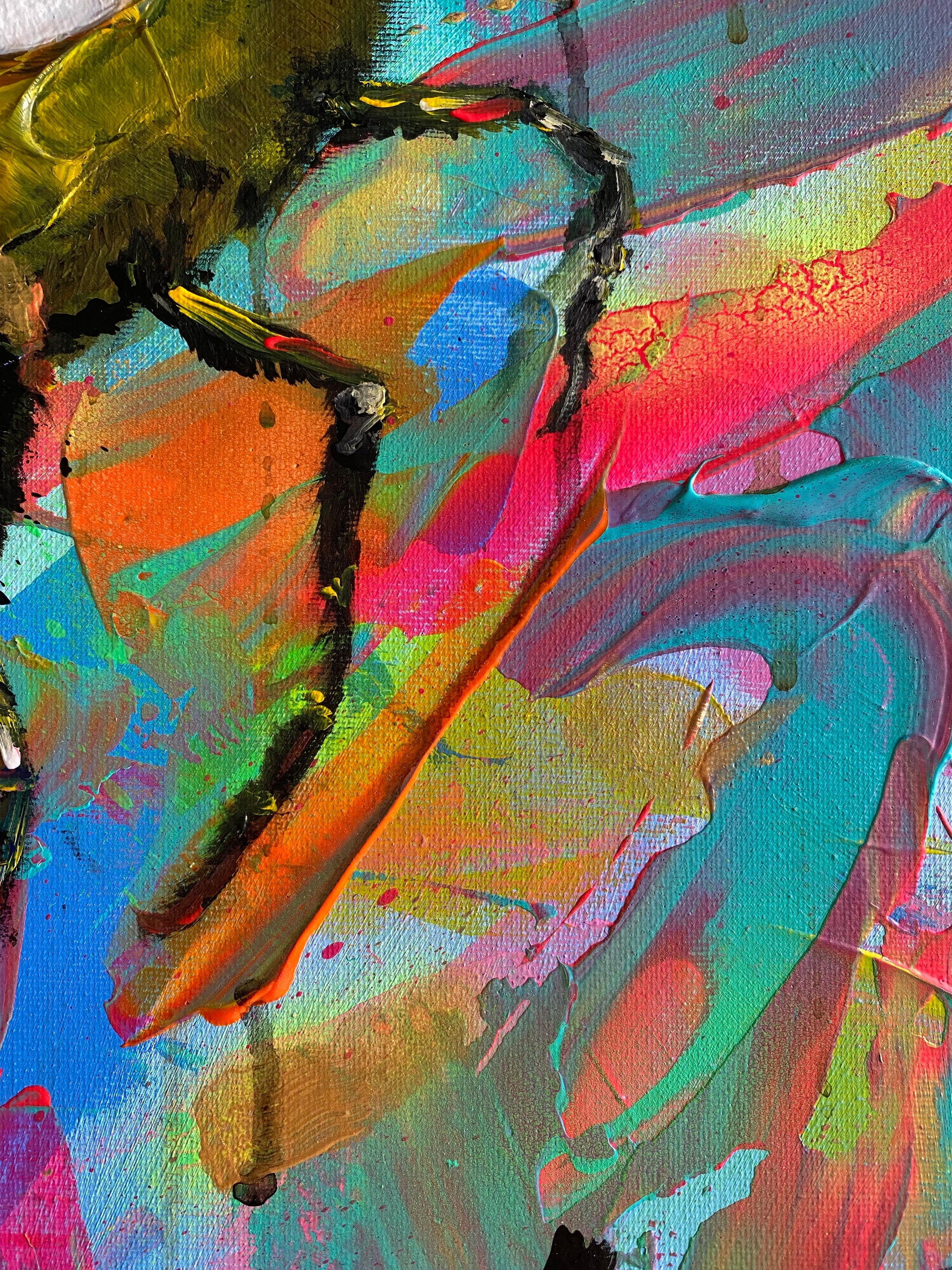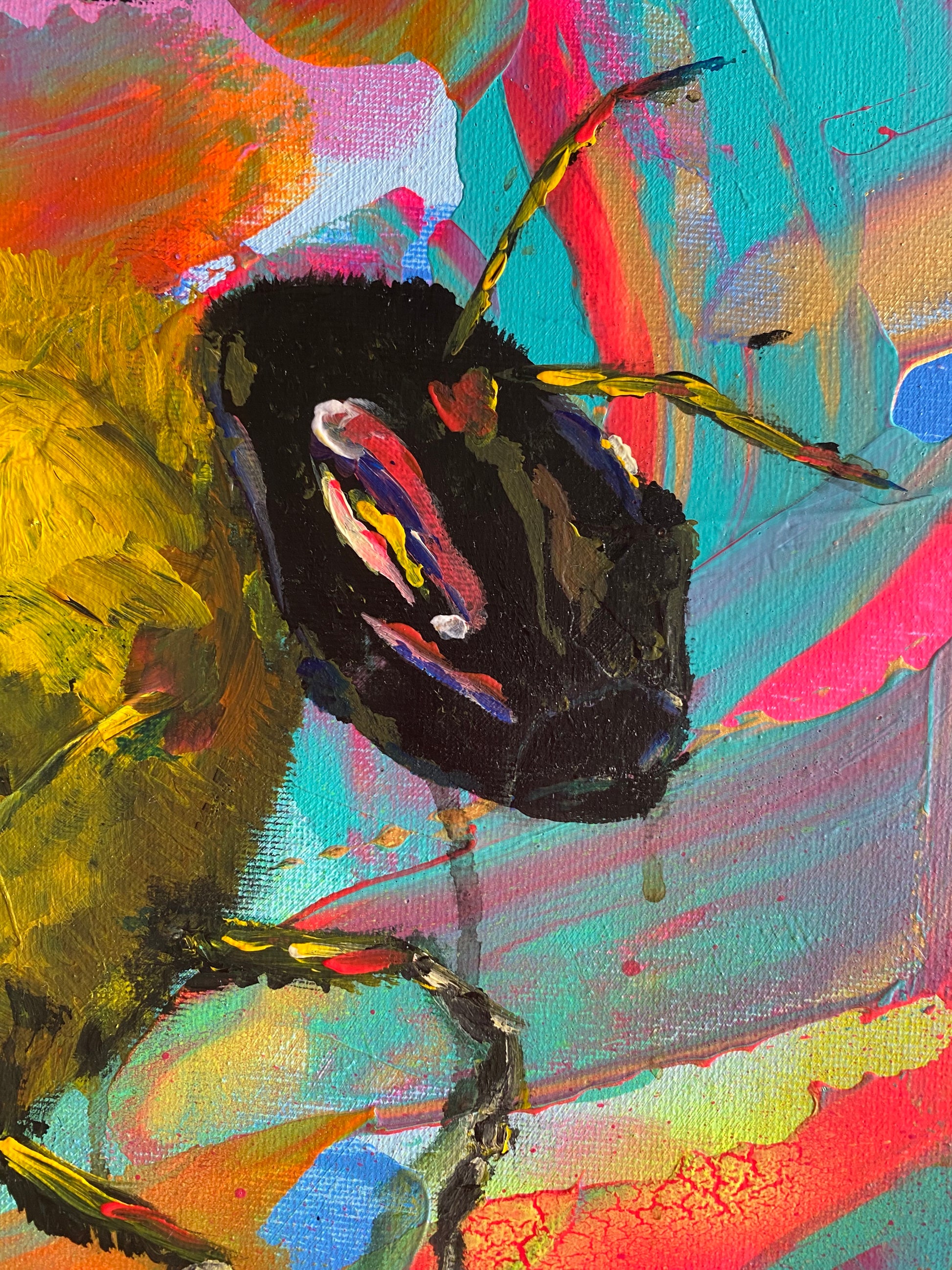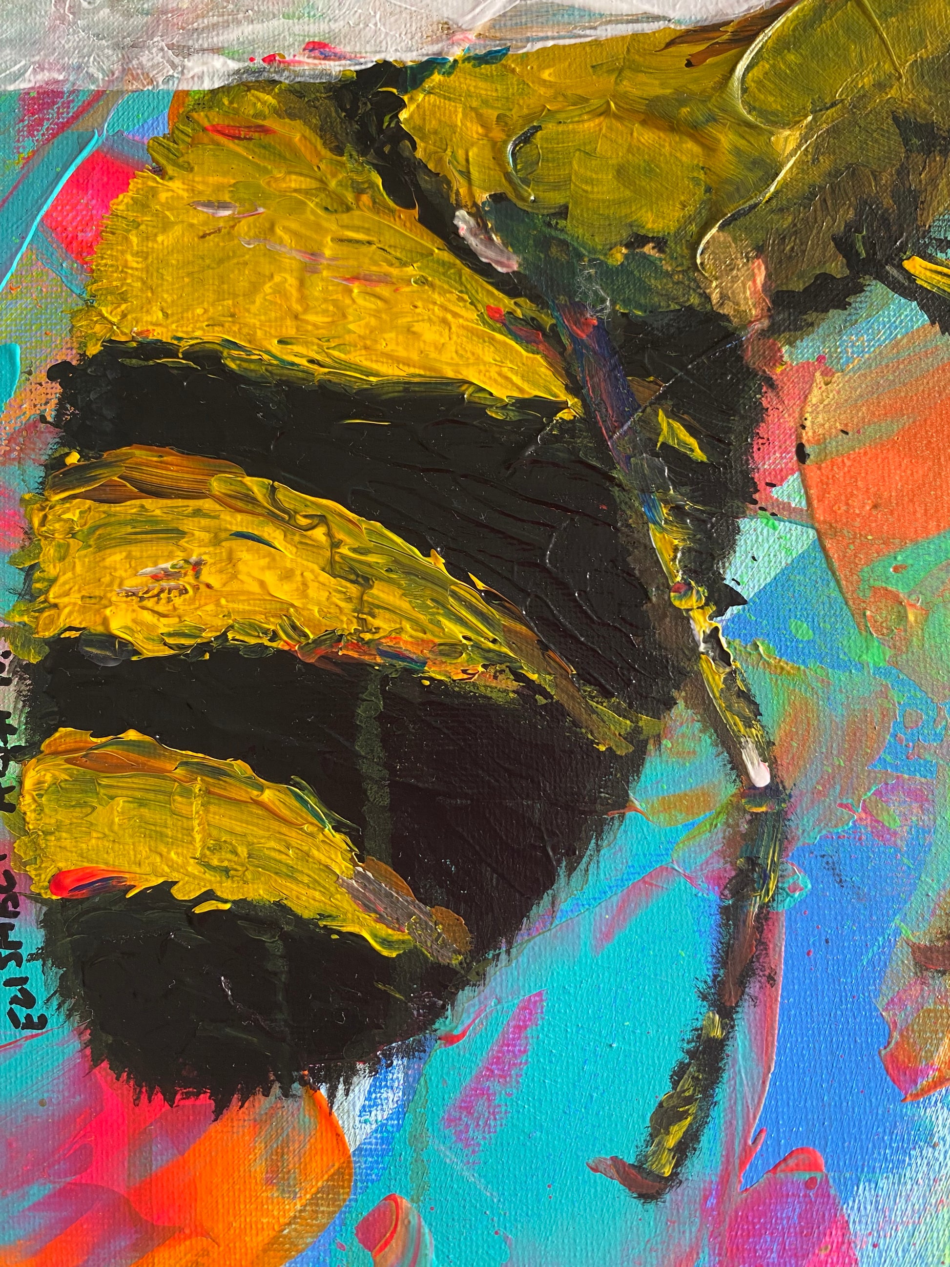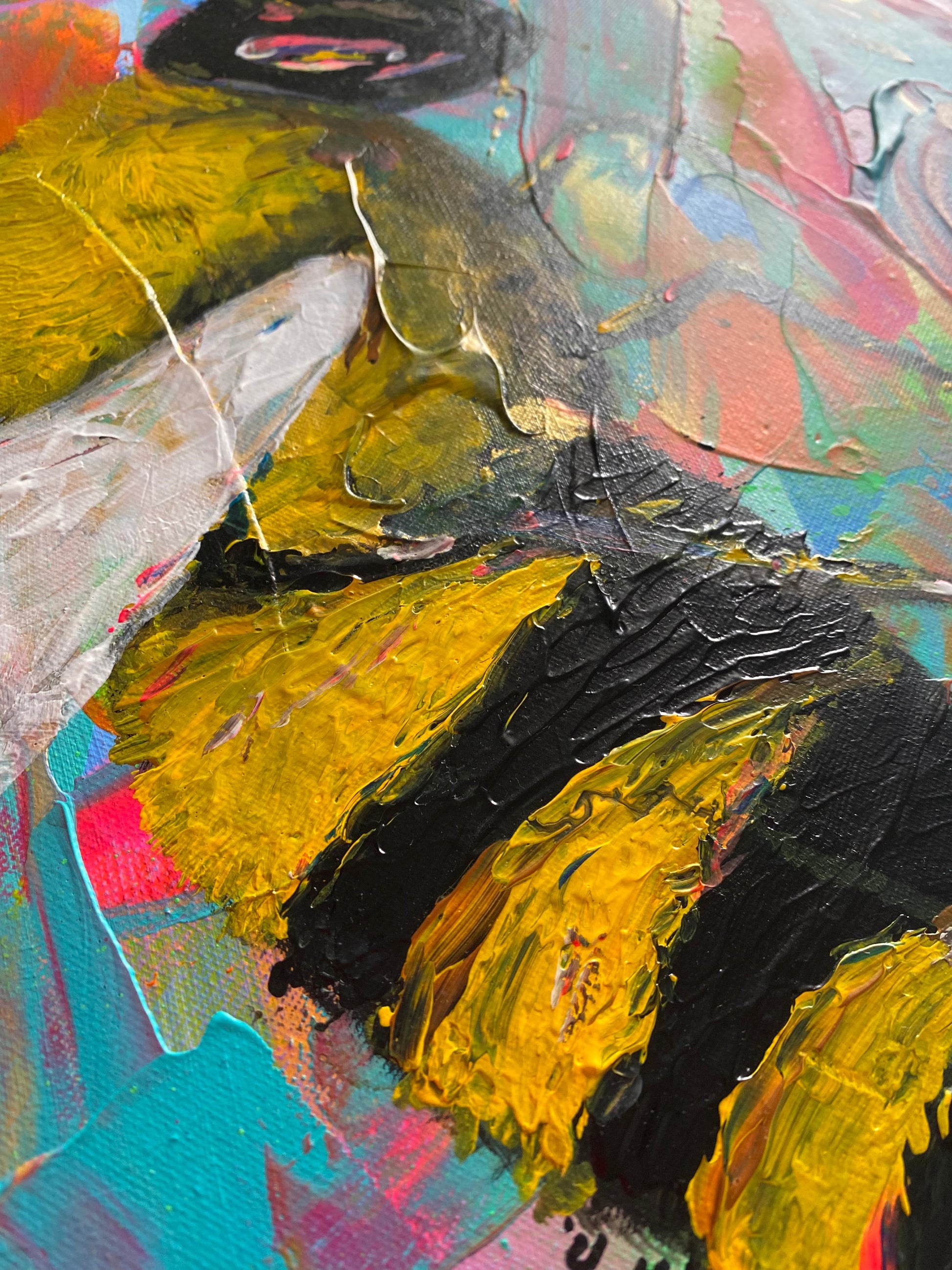 Playful, vibrant, and empowering, this mixed-media style canvas bursts with color and positivity. Against a lively backdrop of swirling neon strokes, a bold bee takes center stage—its textured wings shimmering with light, while the words “Just Bee Yourself” remind us of the beauty of authenticity. Radiating joy and confidence, this artwork is more than a painting: it’s a daily affirmation to embrace who you are and let your true colors shine.