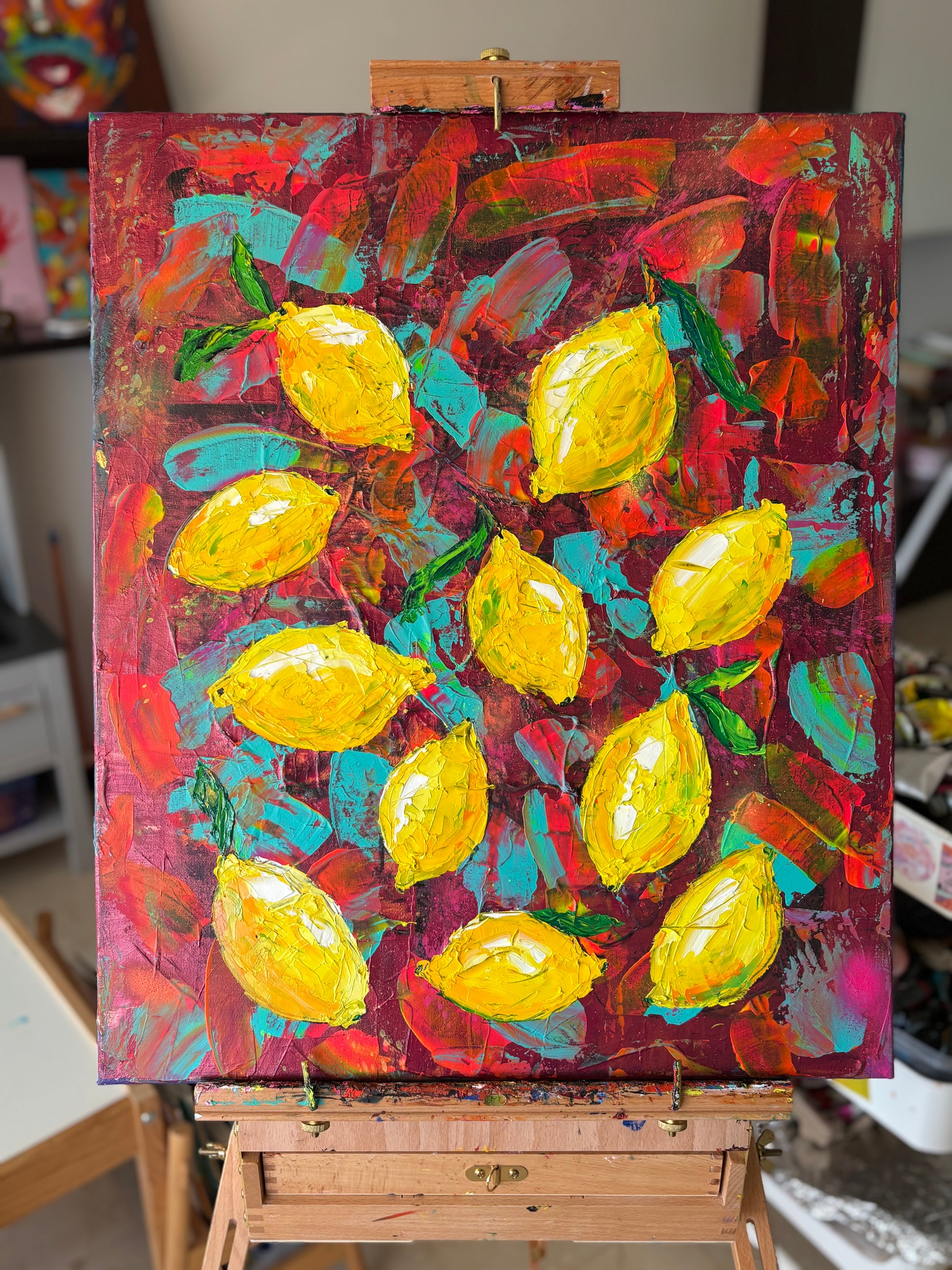 I poured my passion into this oil painting, capturing the vibrant energy of lemons bursting with life. The bold, textured strokes express a lively rhythm—joy met with a touch of tangy intensity. I wanted to evoke freshness and zest, bringing brightness and warmth to your space. Imagine this dynamic energy uplifting your home, sparking inspiration and a joyous atmosphere.
